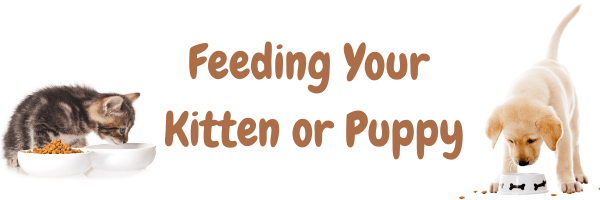 For a personalized recommendation on what and how to feed your puppy or kitten, consult with your veterinarian who can assess your pet’s body condition, rate of growth and overall health.