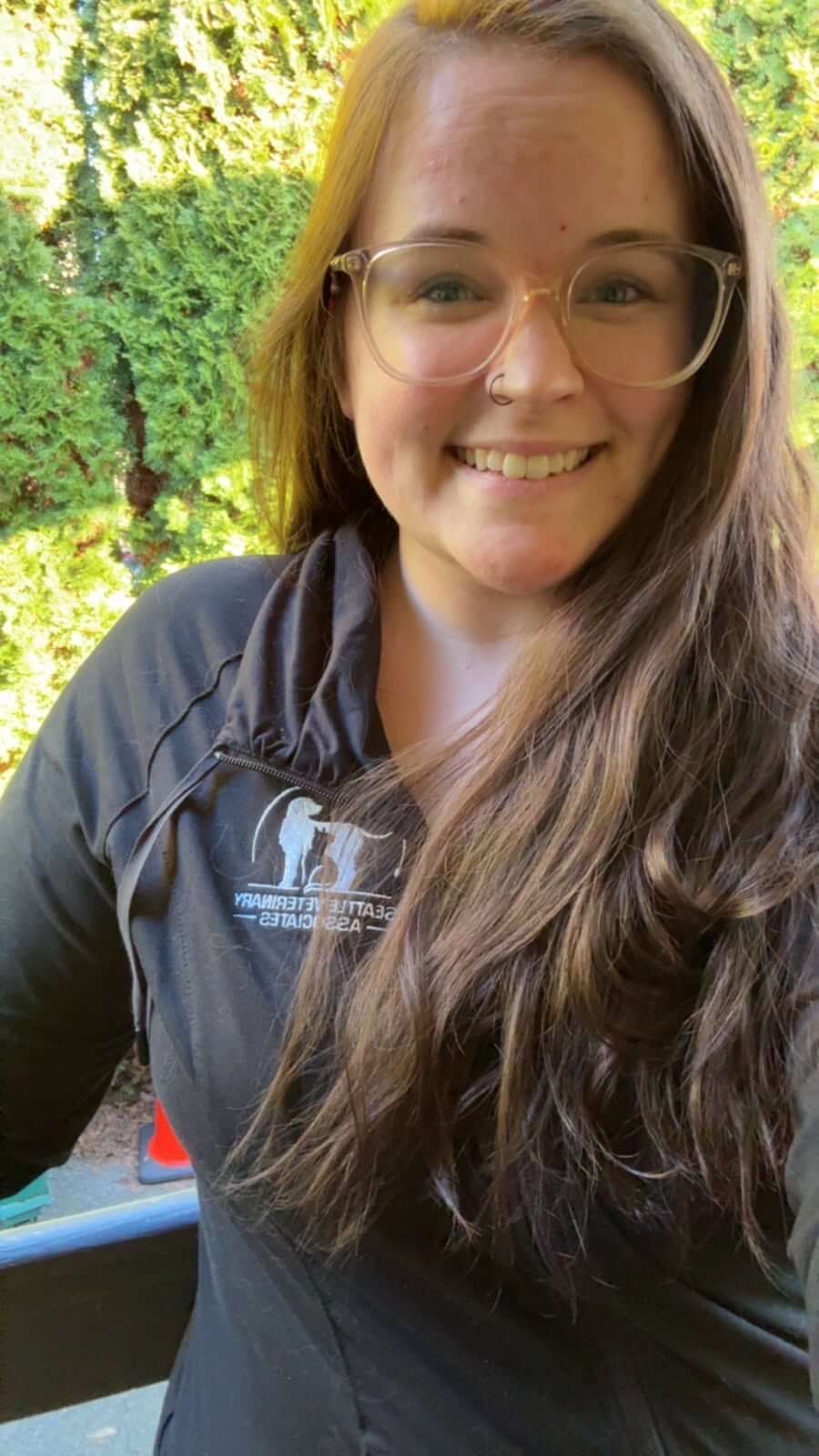Delanie joined SVA in 2021. She has since moved away, moved back, and moved to Richmond Beach Animal Hospital where she shares her elite repair skills, animal handling mastery, and amazing smile. Our fearless assistant loves learning new things (especially related to science and veterinary medicine) which is something her assistant job allows her to do on a daily basis. She says about her job “the cute pets are also a plus.” When she’s not at work she’s baking, trying new foods and restaurants, and sometimes even scuba diving. She shares her home with a husky-German-shepherd-mix named Luna who is featured in several places on our website and also appears routinely on the TV behind the reception desk. Luna knows more than 12 tricks which is pretty darned impressive.