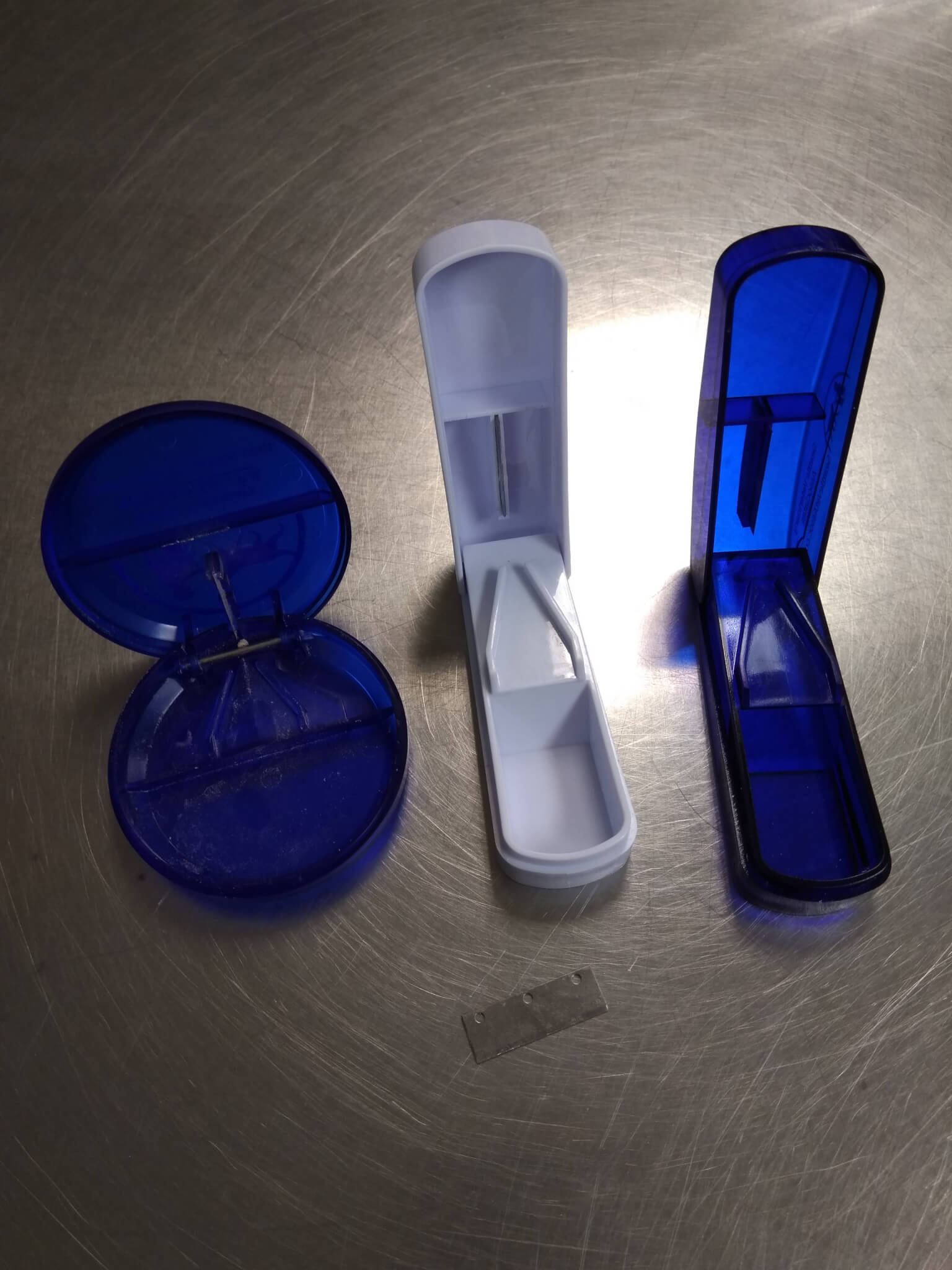 Our doctors have become aware of a dangerous accident that can happen when using a pill splitter to prepare your pet’s medications. Pill splitters use a razor to cut tablets. It may be possible for the razor to become dislodged during normal use resulting in accidental ingestion of the razor depending on how your pet’s medication is administered. We recommend careful inspection of your pill splitter before and after each use. Never use a pill splitter that is worn or damaged and if damage is discovered after use make sure to inspect your pet’s medication before administration. Your pet’s safety is important to us. Take an extra moment to check, for their sake.